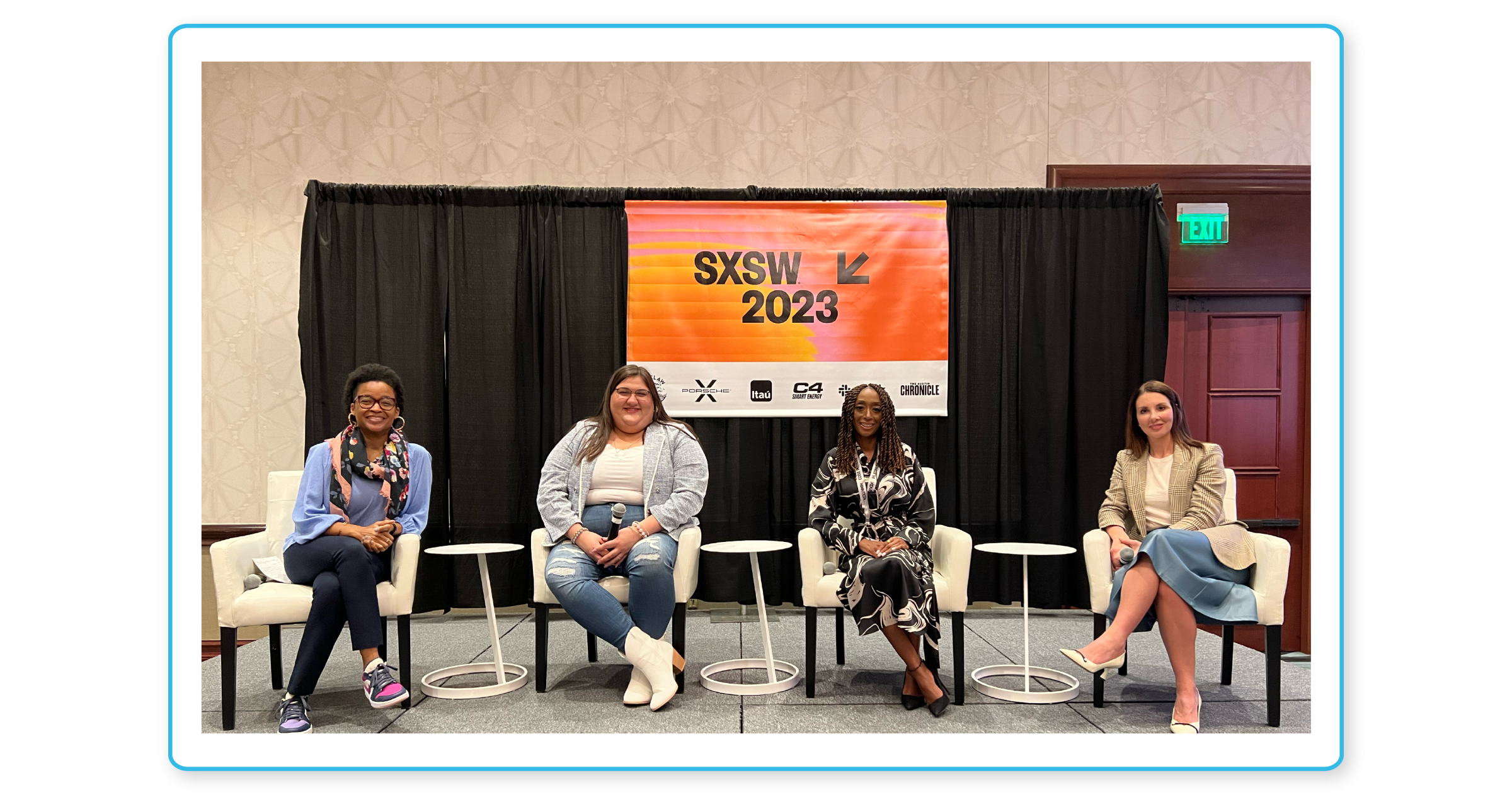 We also hosted two panels while at SXSW! Our Turning the Page: Breaking Barriers and Building Power panel focused on expanding structural power among marginalized communities. Honey Mahogany, who currently serves as Chair of the San Francisco Democratic Party, is also the co-founder of the Transgender Cultural District and is an advocate for gender equity and LGBTQ rights. Jess Pires-Jancose is the Dallas Outreach & Organizing Manager with Avow Texas and has been working on dismantling abortion stigma through education and providing those facing abortion restrictions with a safe and joyous space. Moderator Adri Rosembert from ActBlue joined them as they discussed this movement’s impact on crucial moments over the last few years. To listen to this panel, click here.