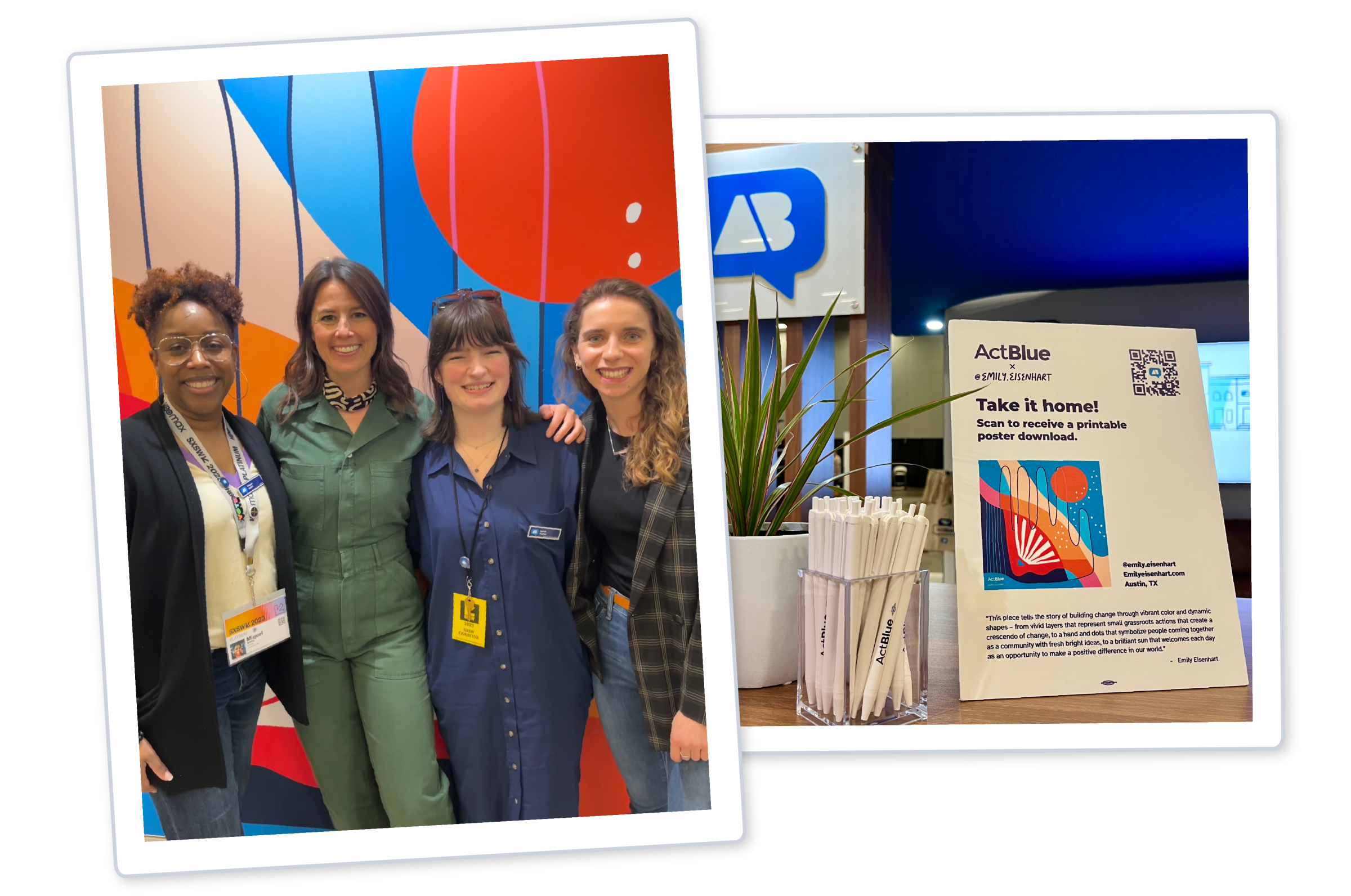 We also hosted a special meet and greet with Austin-based artist Emily Eisenhart, who created an extraordinary mural inspired by ActBlue’s mission to empower changemakers. To learn more about Emily’s work, please visit her website and check out her Instagram!