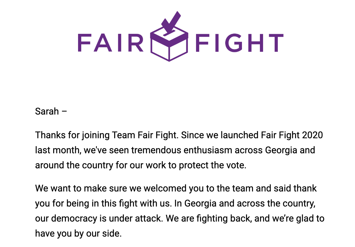 Including information specific to individual recipients, like name, location, and donation history, reinforces that each and every one of your grassroots donors is a valued part of your team. Plus, small-dollar donors who are invested in your cause are more likely to volunteer, vote, and talk to friends and family! So developing deeper relationships with your supporters pays off in more ways than one — it is an important tool both for your group and the larger small-dollar donor movement.